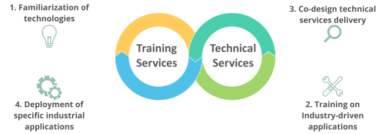 Teaching Factory Competence Center support the implementation of technical services by training professionals on best practices for manufacturing. All members of the competence center have access on knowledge database which include material such as documents, technical studies, datasheets, presentations etc.) about the research on technological applications. ![]()